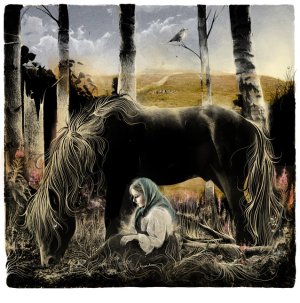 Черная лошадь с белым глазом