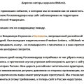 В пятницу, 28 июня, основатель издательства Freedom Letters Георгий Урушадзе выложил у себя в Facebook пост о том, что ему пришло второе письмо от Роскомнадзора с предупреждением о блокировке сайта в России. Инициатор — издательство АСТ. Такое же уведомление пришло и писателю Борису Акунину.